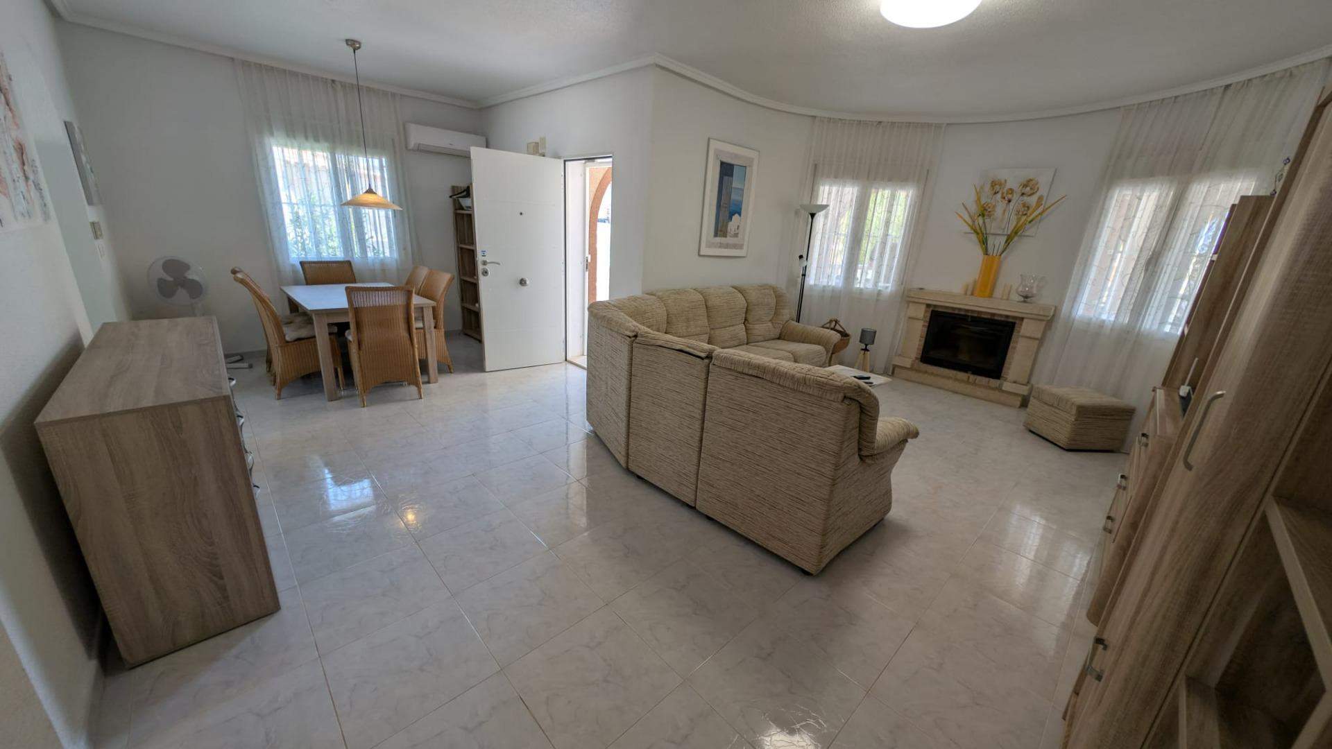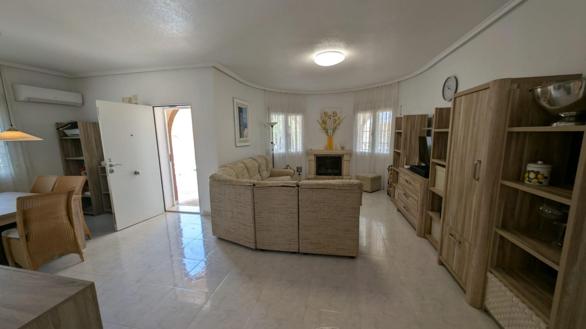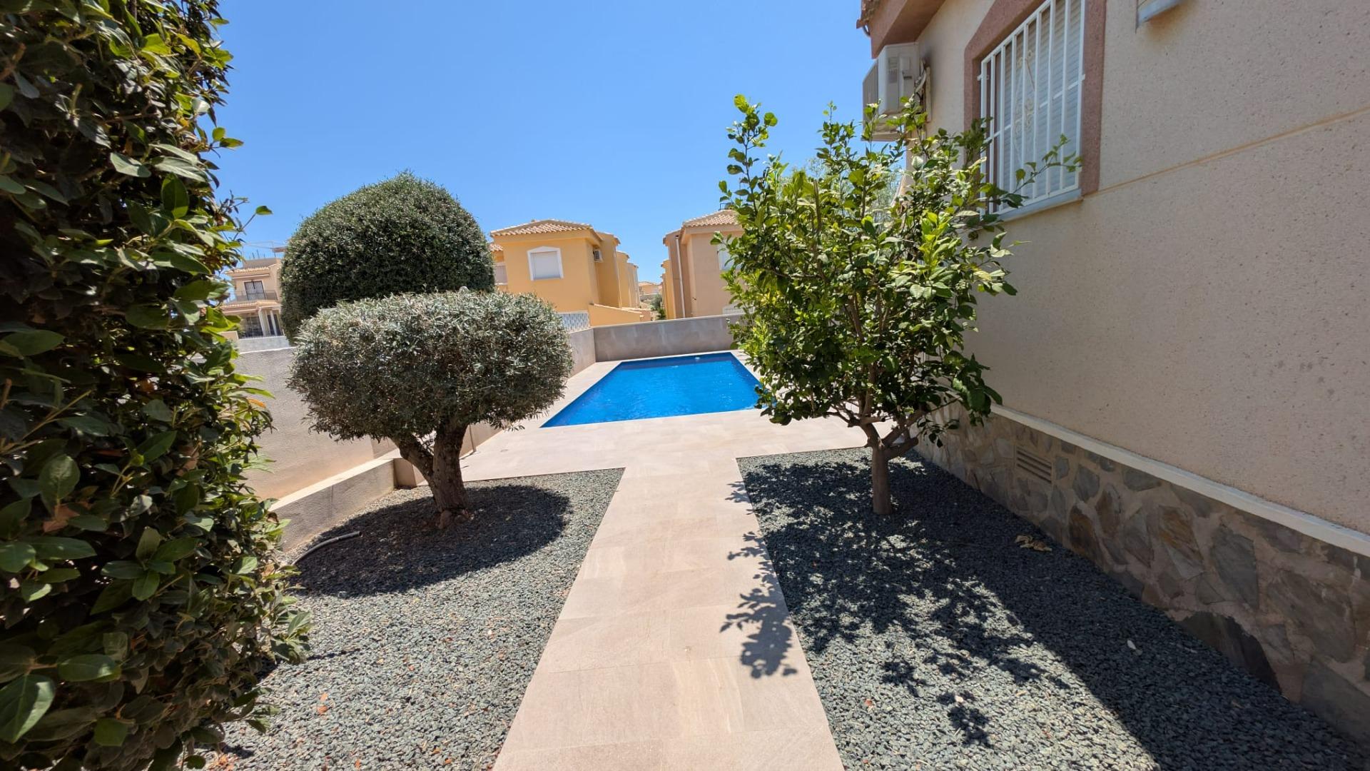 Внутрішній простір включає 4 кімнати, з яких 3 спальні та 1 салон. Будинок також обладнаний 2 ванними кімнатами. Однією з ключових особливостей є приватний басейн, що створює ідеальні умови для відпочинку та розваг у теплу пору року.