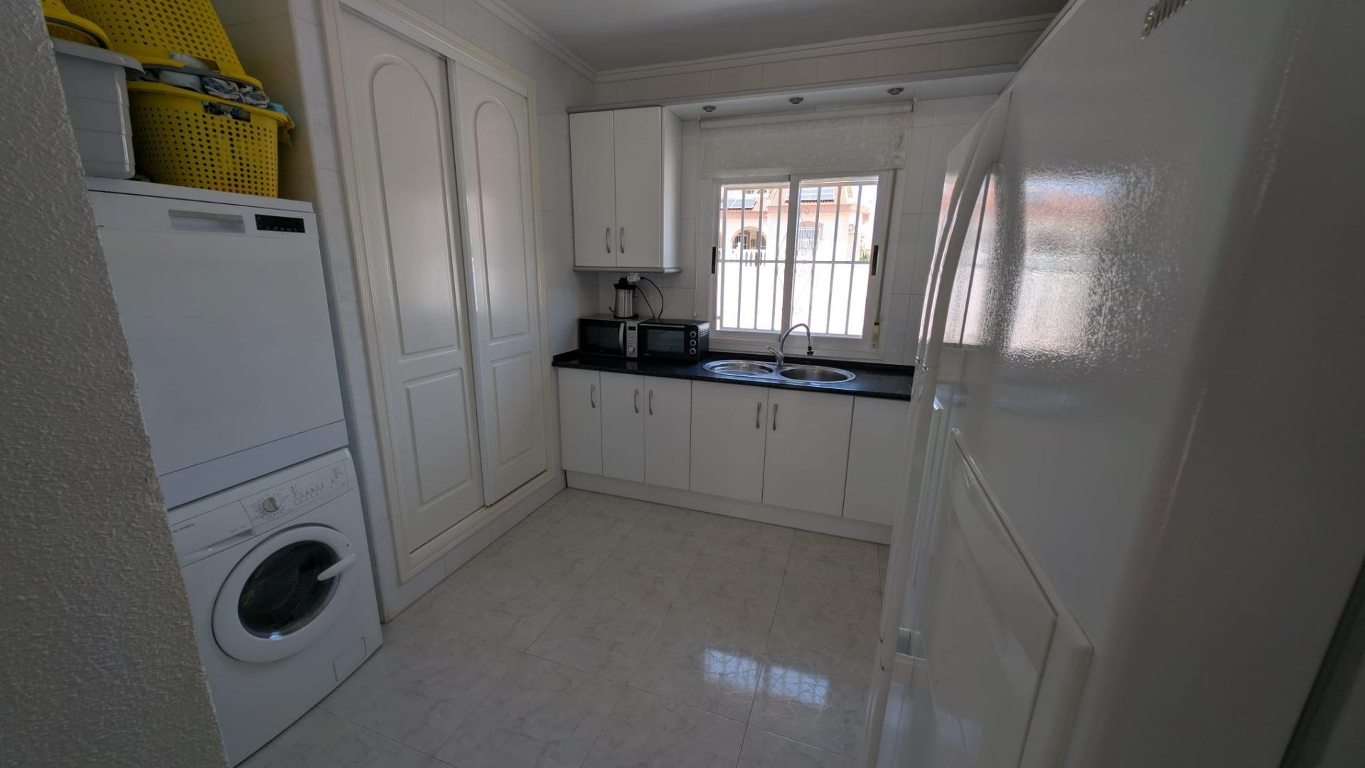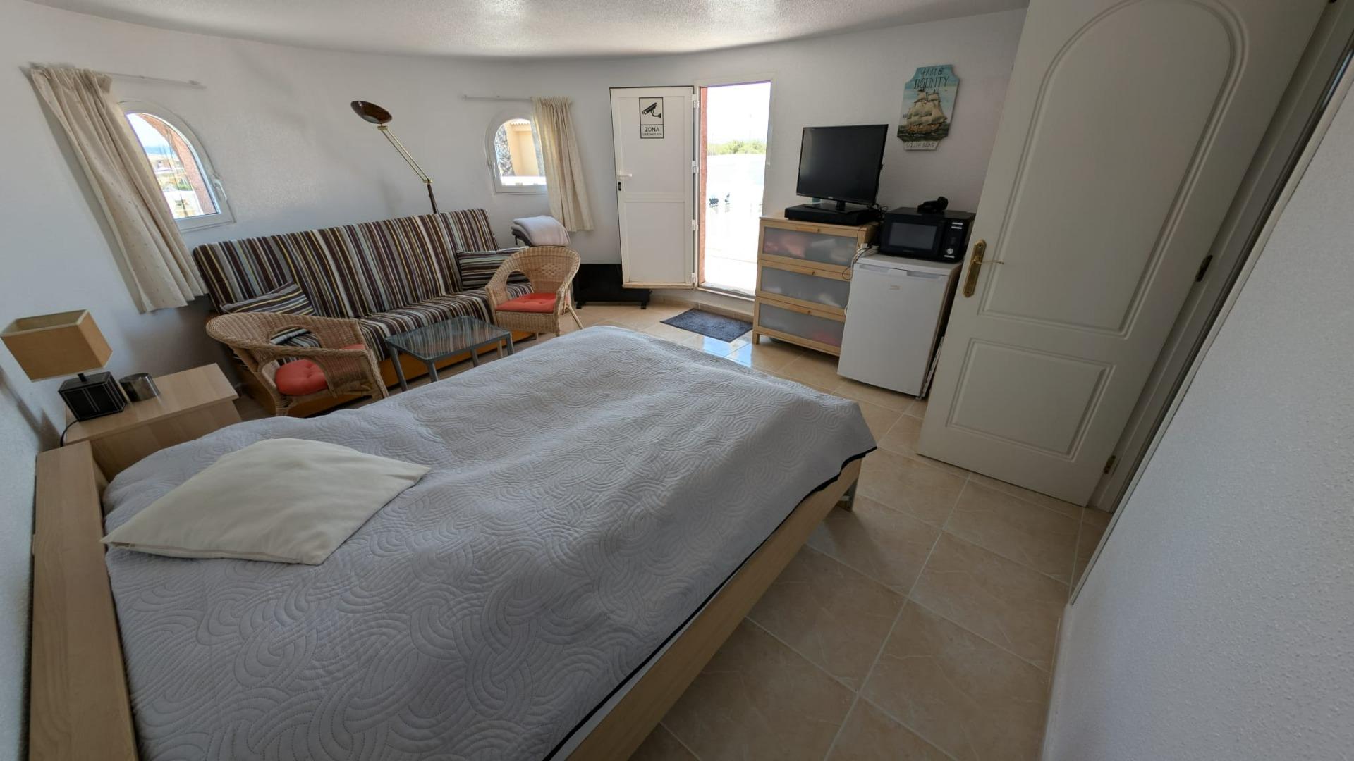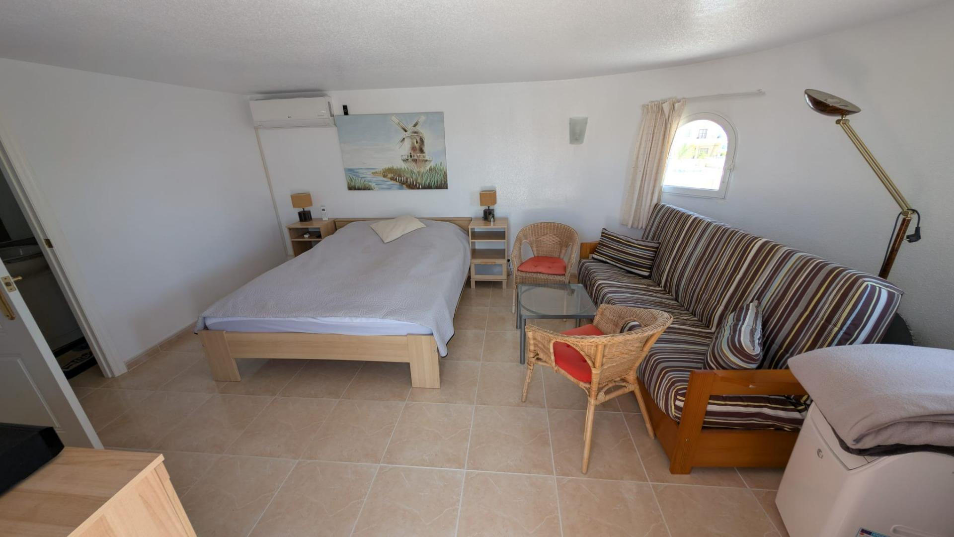 Внутрішній простір включає 4 кімнати, з яких 3 спальні та 1 салон. Будинок також обладнаний 2 ванними кімнатами. Однією з ключових особливостей є приватний басейн, що створює ідеальні умови для відпочинку та розваг у теплу пору року.