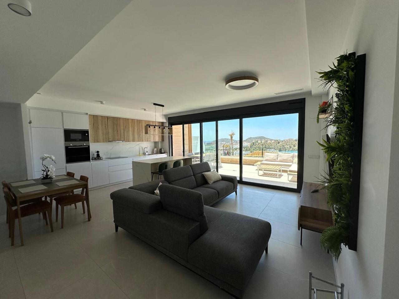 Пропонуємо вашій увазі цей просторий дуплекс у живописній курортній зоні Seascape, розташованій у Финестраті. Нерухомість включає в себе три світлі спальні, ідеально підходящі для комфортного проживання, і три сучасні ванні кімнати. Повністю обладнана кухня створить ідеальні умови для кулінарних експериментів, а південна орієнтація і плитка з порцеляни забезпечать обилицю природного світла протягом усього дня.