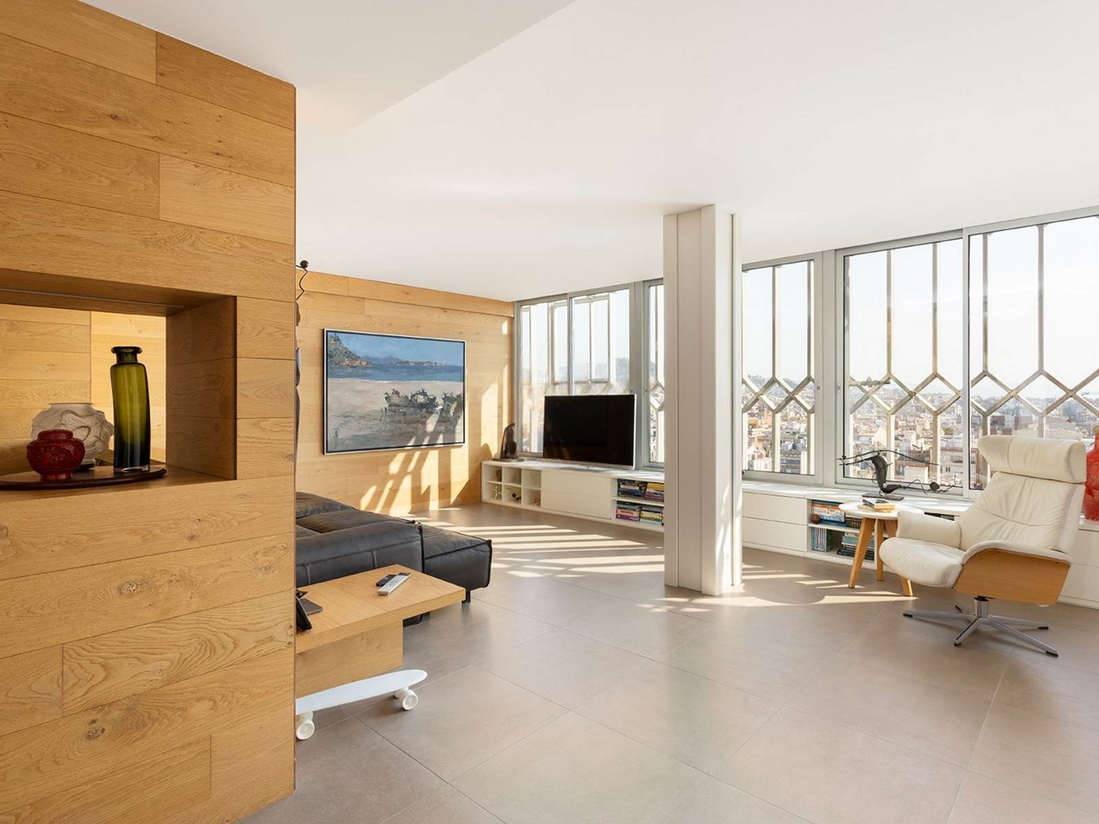 Пропонується до продажу оновлена квартира в престижному районі Гальвани, з унікальними 360º видами на море, Саграда Фамілія, башту Агбар і Монжуік. Інтер’єр виконаний з акцентом на якість і комфорт: простора вітальня-столова з відкритою кухнею забезпечує відмінне освітлення і захоплюючі панорами.