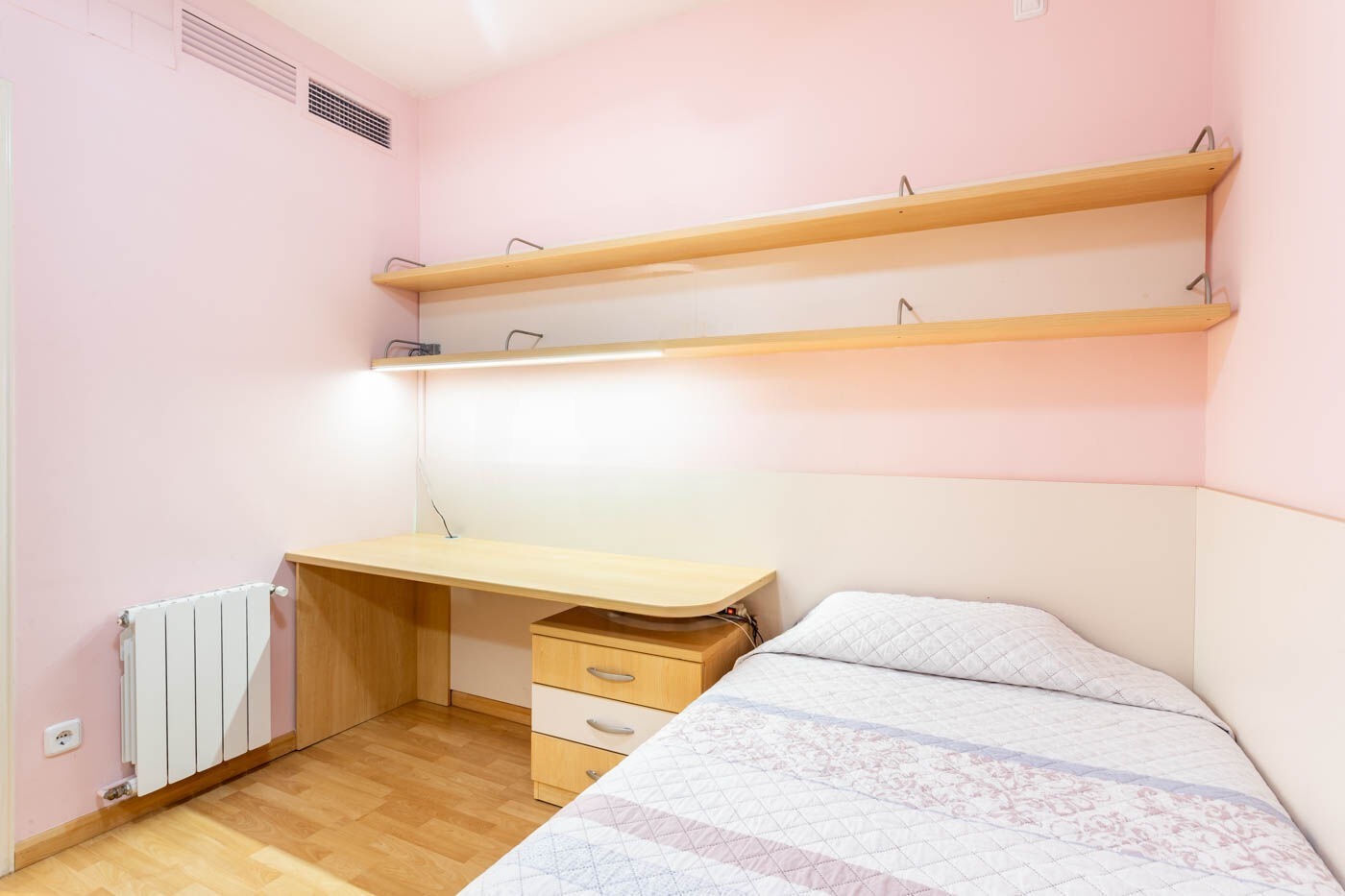 Внутрішнє планування включає 4 спальні. Головна спальня оснащена балконом та вбудованою шафою, а також має власну ванну кімнату. Додатково є дві одномісні та одна двомісна спальні, що виходять у внутрішній двір. У квартирі розташовані три ванні кімнати: ванна в головній спальні, повноцінна ванна в житловій частині та гостьовий санвузол.