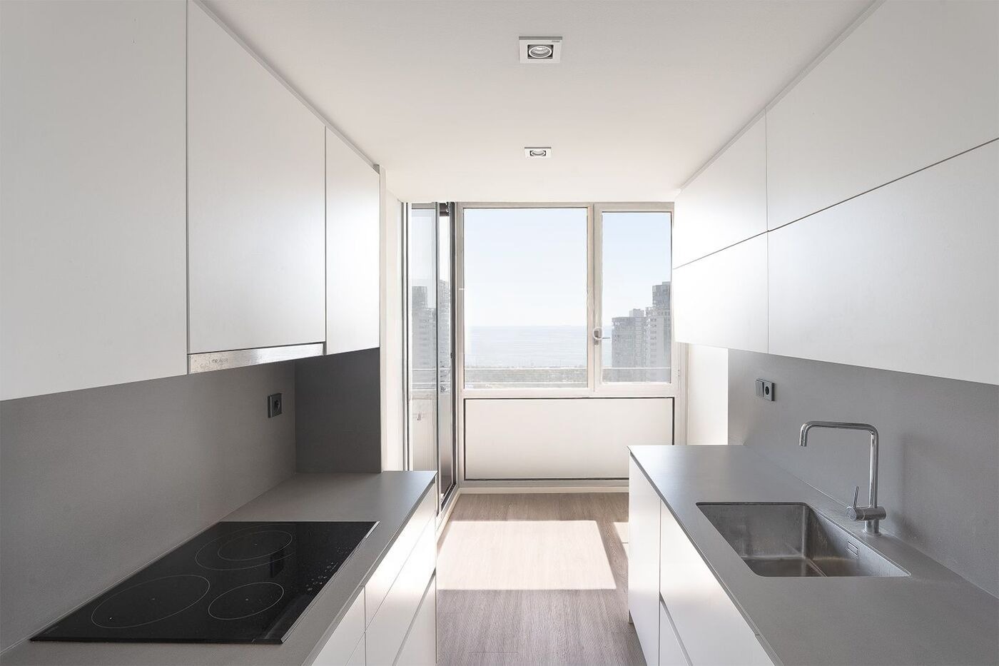 Представляємо вашій увазі квартиру, розташовану в Барселоні на 18-му поверсі сучасного житлового комплексу Illa del Cel в районі Діагональ Мар. Цей комплекс складається з двох будівель з відкритими фасадами та загальними зонами, всього в 5 хвилинах ходьби від пляжу Льєвант та набережної.