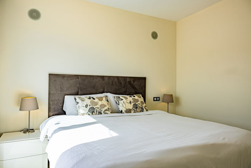 Пропонується до продажу затишна квартира в Кампанарио, що має сучасний дизайн та якісне оздоблення. У житловому просторі площею 90 м² розташовані дві простори спальні, обладнані електричними жалюзі, та дві ванні кімнати, одна з яких включає в себе джакузі. Відкрита вітальня добре освітлена та зручно поєднана з кухнею, де встановлена техніка марки Siemens та новий холодильник.