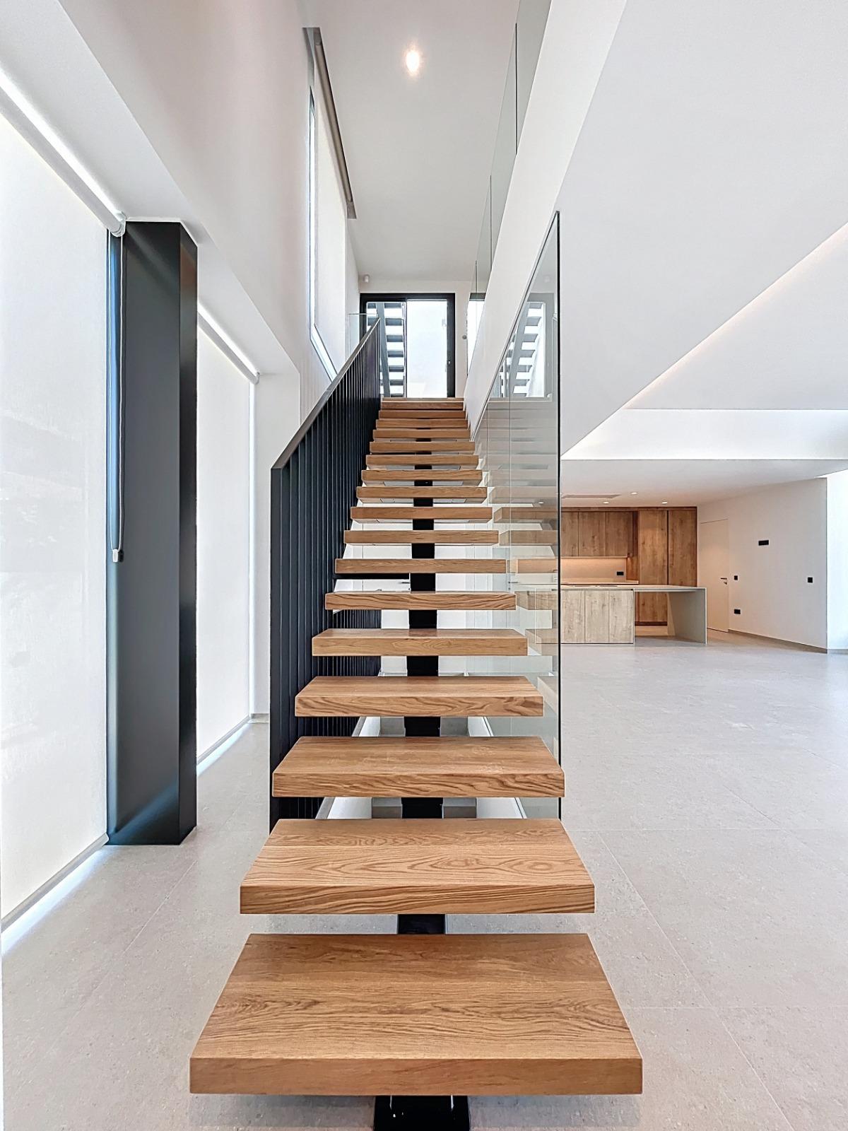 - Другий поверх: три спальні з ванними кімнатами та виходом на власну терасу, а також солярій з панорамним видом на навколишні гори.