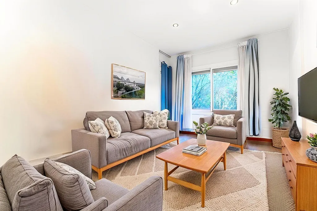 Пропонується в продажу світла квартира, розташована в центрі барселонського району Ейшампле, на престижній вулиці Лепант. Всего в кількох хвилинах від знаменитих пам’яток, таких як Саграда Фамілія та Госпіталь Сант-Пау. Загальна площа квартири складає 95 м², з яких 85 м² — житлова. Об’єкт включає 5 спалень (одна з яких раніше використовувалася як вітальня) та 2 ванні кімнати. В наявності ліфт і балкон-тераса, де можливо насолоджуватися середземноморським кліматом.
