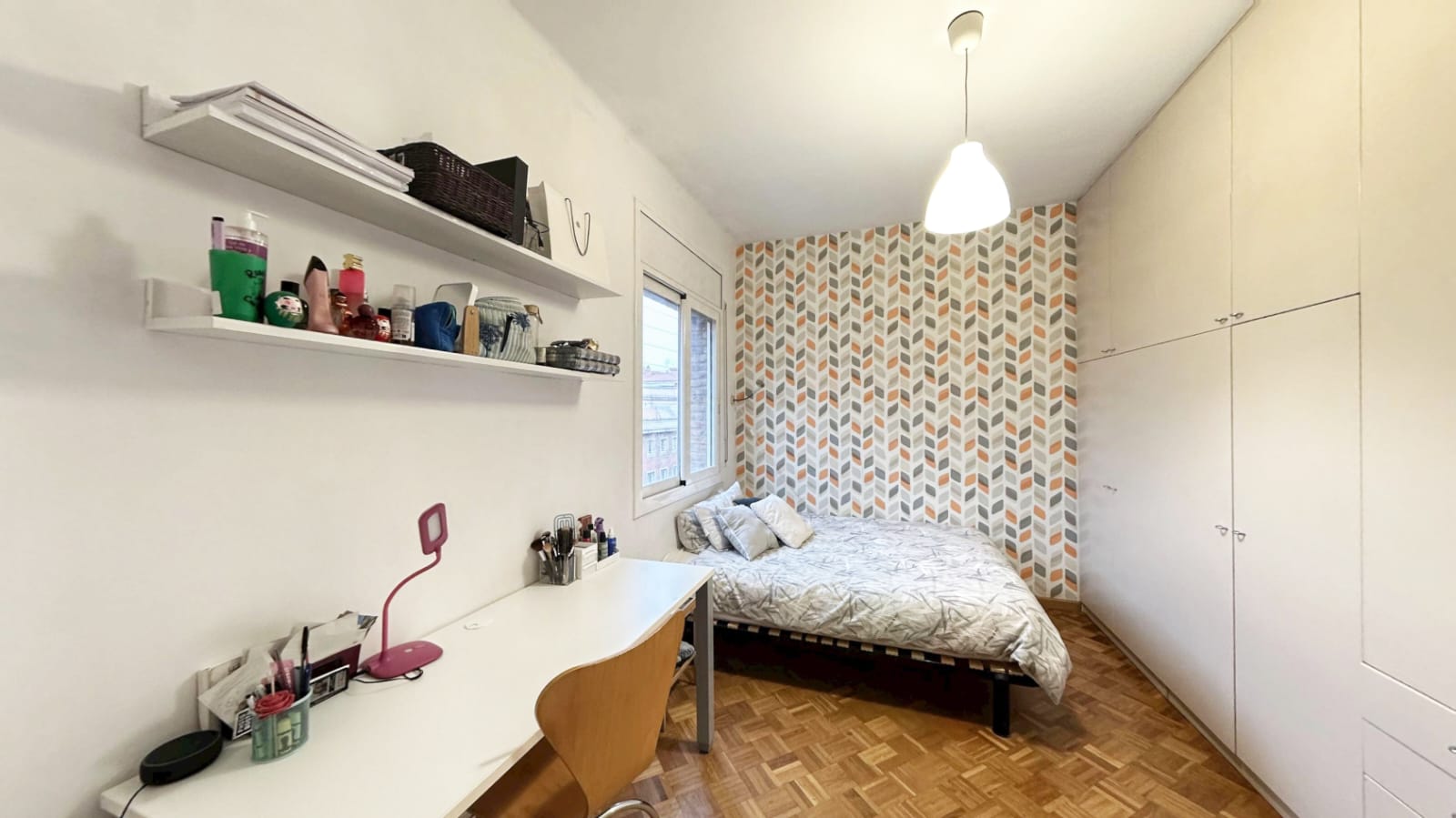 Представляємо вашій увазі простору та світлу квартиру, розташовану в престижному районі Байш-Гінардо у Барселоні. Об’єкт розташований на кутовому п’ятому поверсі (четвертий поверх за рахунком з мезоніном) доглянутого будинку з ліфтом. Він повністю був відремонтований у 2010 році, були замінені всі комунікації, включаючи сантехніку та електрику. У 2017 році оновився гостьовий туалет. Квартира оформлена в затишному стилі з дерев’яною підлогою та продуманим плануванням, що включає три спальні (дві з яких великі і одна компактна), простору вітальню з виходом на балкон, окрему кухню та два санвузли.