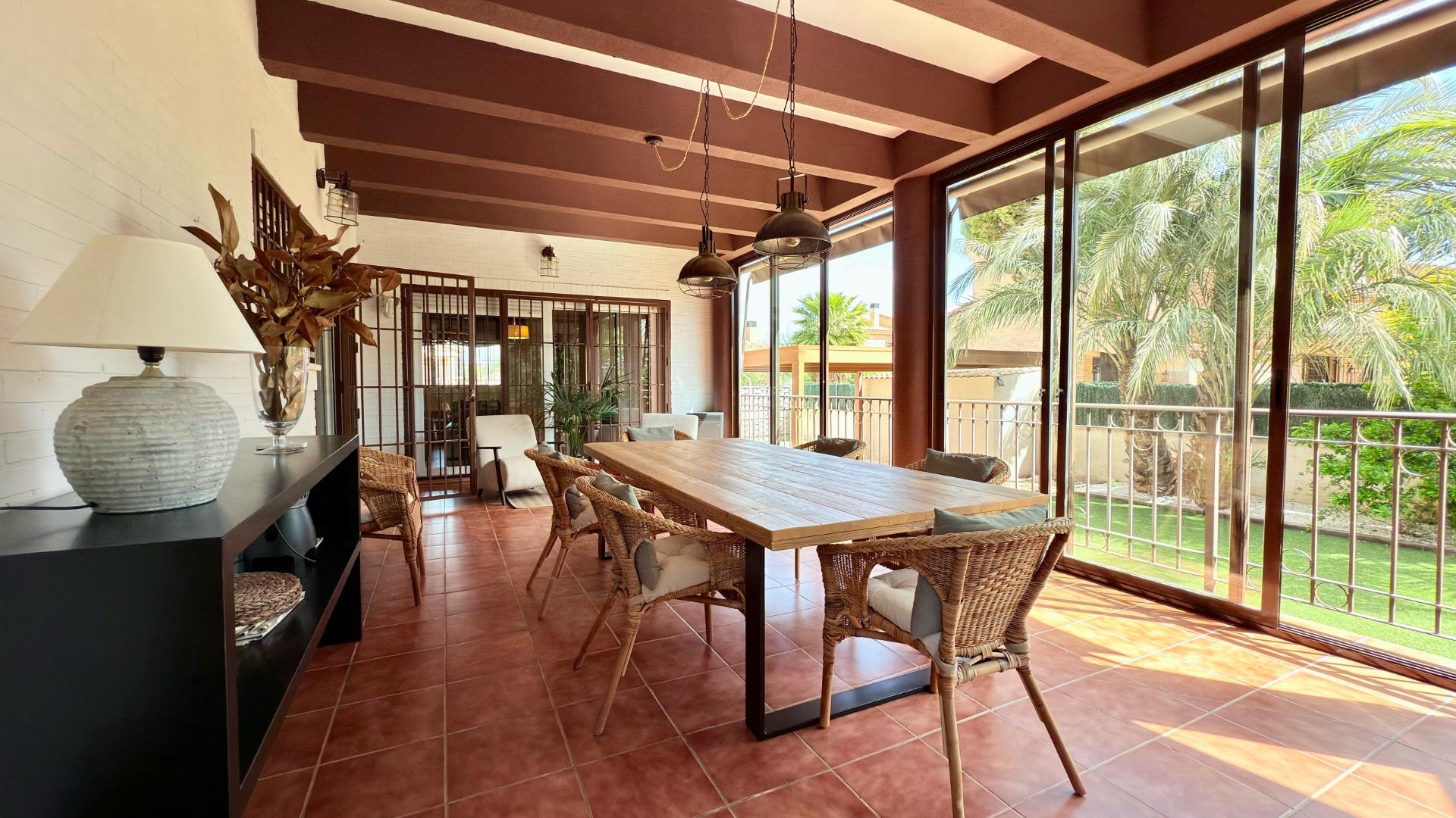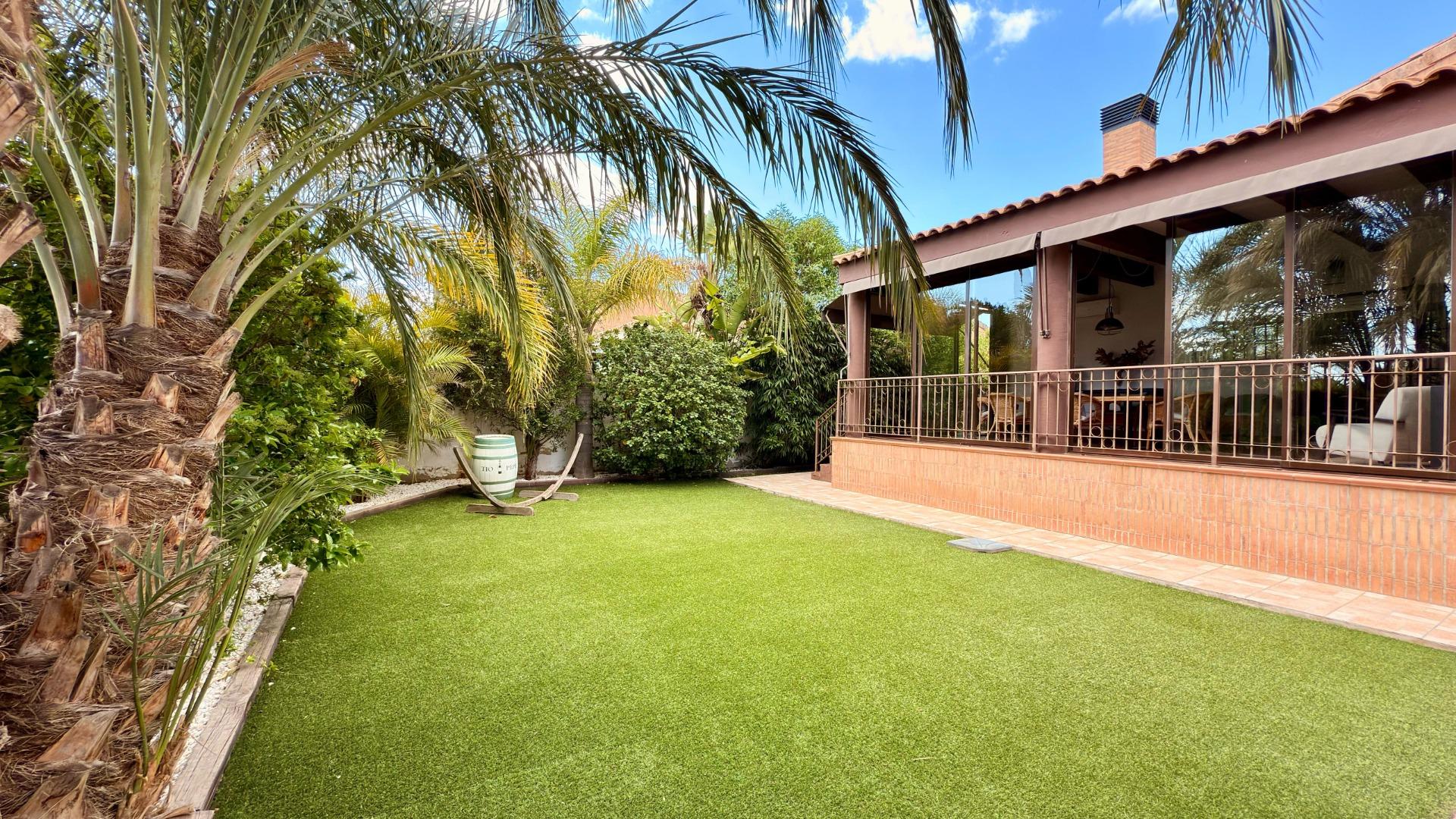 При цьому вілла має центральне кондиціонування, електричні радіатори та сонячні батареї. Ділянка площею близько 900 м² включає в себе приватний басейн, сад з доглянутою рослинністю, в тому числі пальми, і цегляний гриль. Цей тихий район ідеально підходить для сімейного проживання. Місто Аліканте знаходиться всього в 10 хвилинах їзди, а Playa San Juan — в 6 кілометрах.