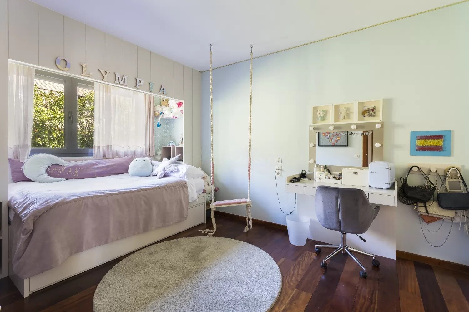 На цьому ж рівні знаходиться головна спальня з гардеробною і ванною кімнатою, а також дві спальні з ванними кімнатами, які можуть бути використані як кабінети або ігрові кімнати. Ці кімнати мають великі вікна, що пропускають багато світла і відкривають чудовий вид. На верхньому поверсі розташована велика вітальня з тренажерним залом, ванною і барною стійкою, а також солярій з панорамним видом на місто і навколишні гори. На нижньому поверсі є простір для відпочинку, водна зона і приміщення для обслуговуючого персоналу з ванною, а також гараж на шість автомобілів і складська площа в 16 м². Вілла відрізняється високоякісною обробкою, включаючи сучасні алюмінієві вікна і систему кондиціонування.