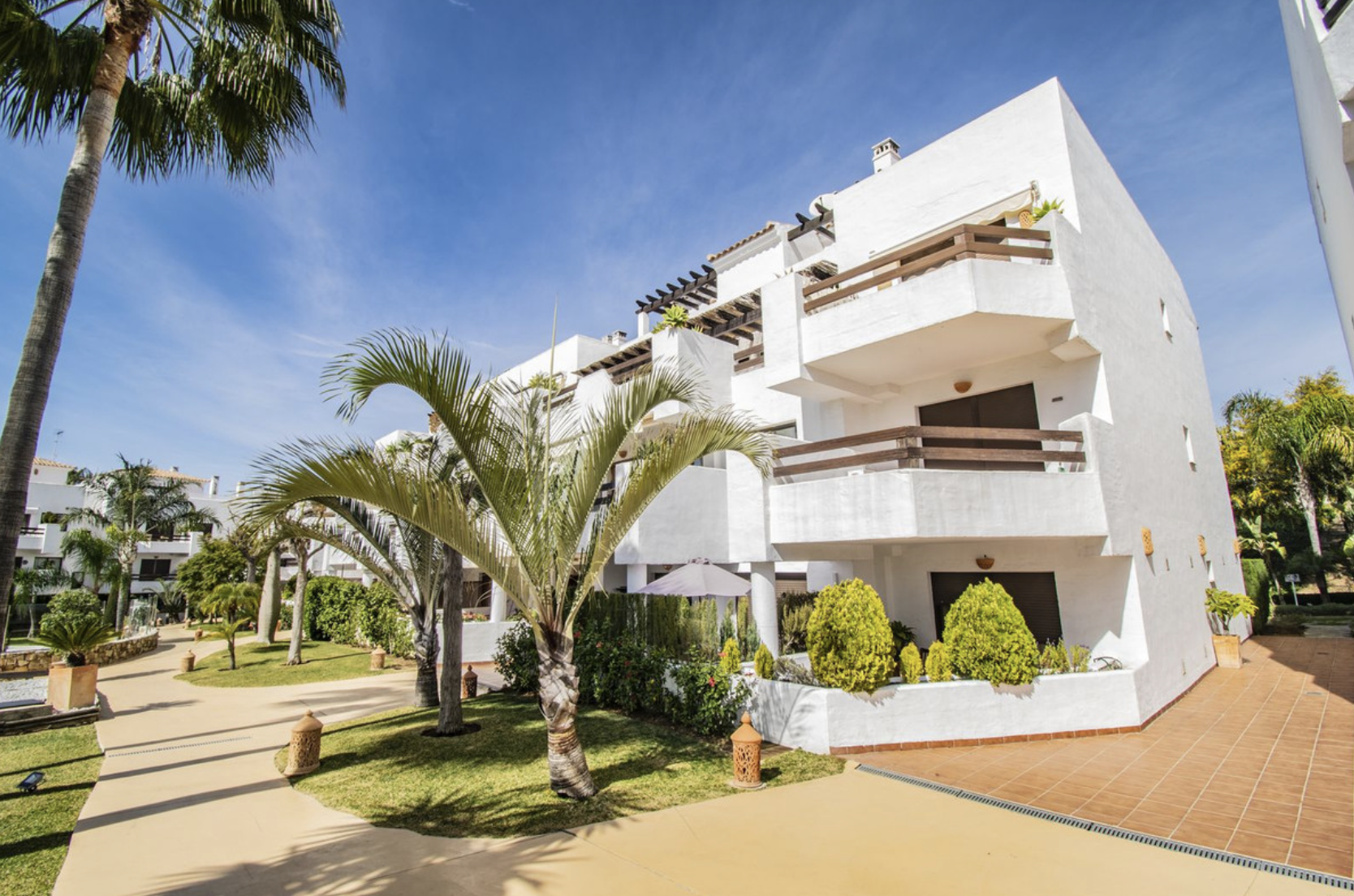 Комплекс находится в небольшом закрытом сообществе с ухоженными садами и общим бассейном, создавая прекрасные условия для отдыха. Это предложение может быть интересным для тех, кто ищет недвижимость в непосредственной близости от пляжа.