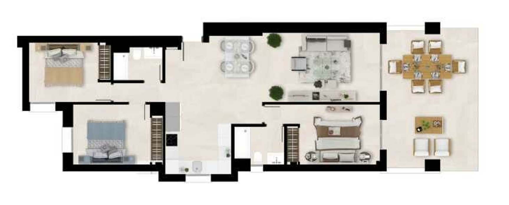 Интерьер включает кухни с встроенной мебелью, что позволяет сразу приступить к обустройству пространства. Апартаменты расположены на удобном этаже и находятся в хорошем состоянии, что обеспечивает комфортный уровень жизни. Также стоит отметить наличие террасы, которая станет отличным местом для отдыха на свежем воздухе.