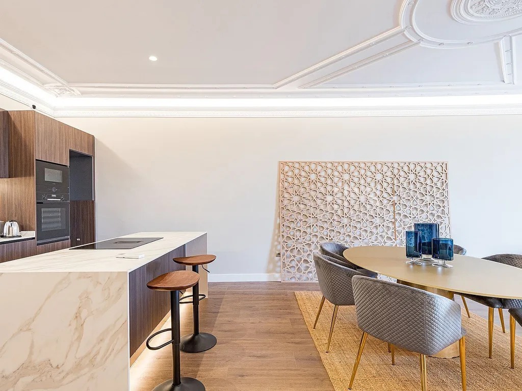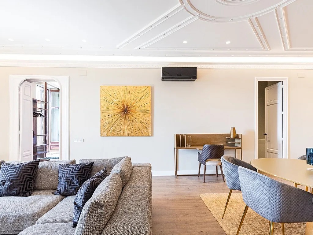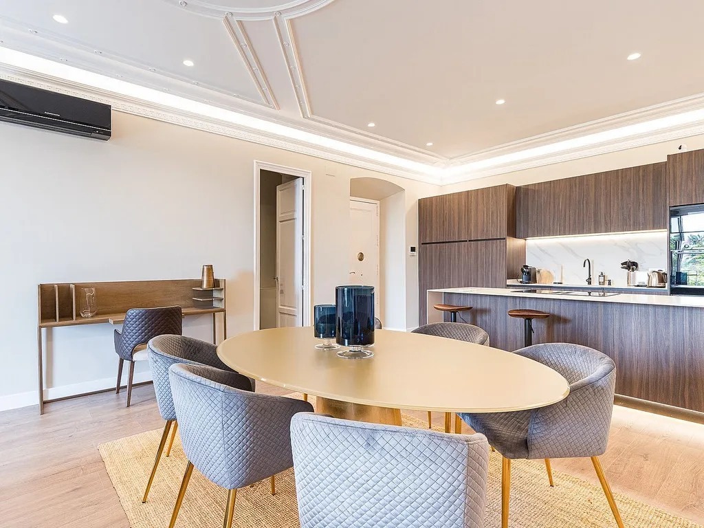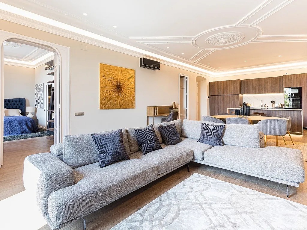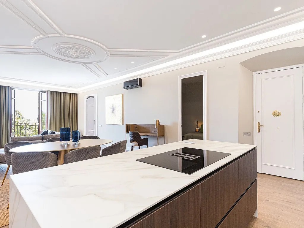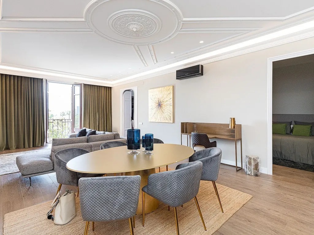 Пропонуємо вам розглянути сучасну квартиру, розташовану на знаменитому проспекті Passeig de Colom, прямо навпроти порту. Площа об’єкта складає 131 м², і він повністю оновлений з використанням матеріалів преміум-класу. Квартира знаходиться на реальному третьому поверсі з ліфтом і пропонує комфортний житловий простір, де зона вітальні гармонійно поєднується зі столовою та кухнею відкритого планування.