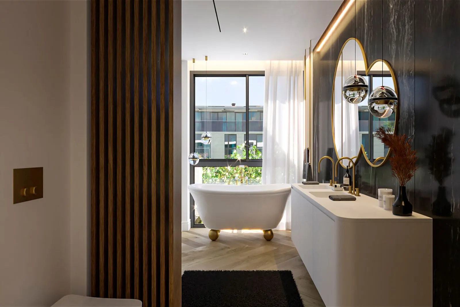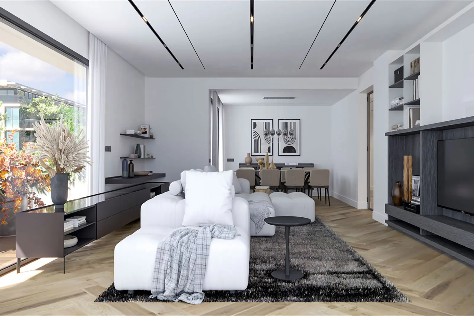 Интерьеры квартиры созданы в современном дизайне, с влиянием итальянского стиля от Poliform, который отличается функциональностью и элегантностью. Просторная кухня свободно связывается с уютной гостиной и ведет на террасу, что позволяет наслаждаться воздухом и панорамными видами. Мастер-люкс включает в себя светлую и комфортную спальню с ванной комнатой, а отделка подчеркивает безупречное качество.