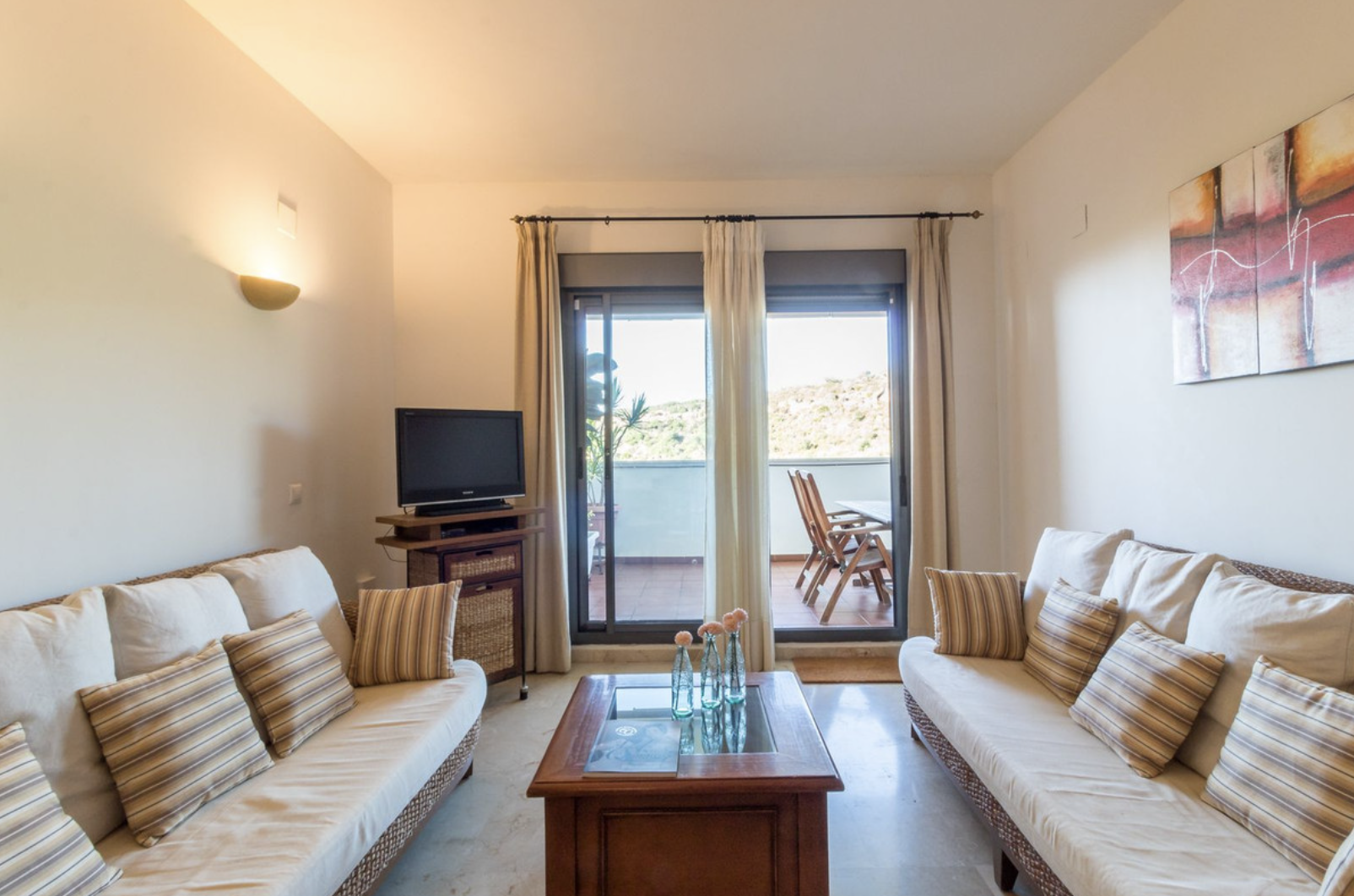 Недвижимость расположена в тихом районе между Ла-Дукесой и Сотогранде. Квартира предлагает просторный холл, светлую гостиную/столовую и полностью оборудованную кухню. Также предусмотрены две большие спальни с встроенными шкафами и две ванные комнаты (одна из которых смежная). Обособленная терраса с юго-западным направлением открывает великолепный вид на море, Гибралтар и африканское побережье, с доступом из гостиной и главной спальни.