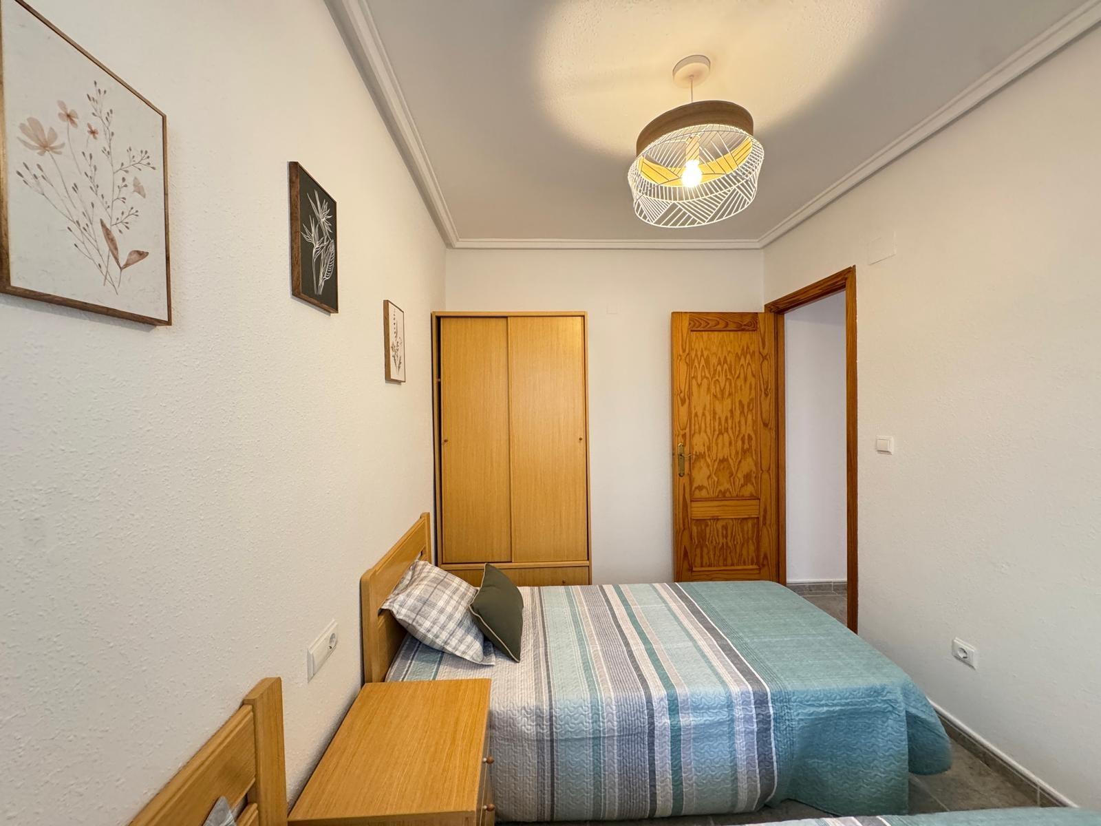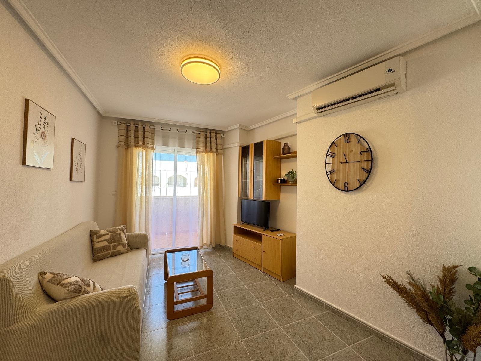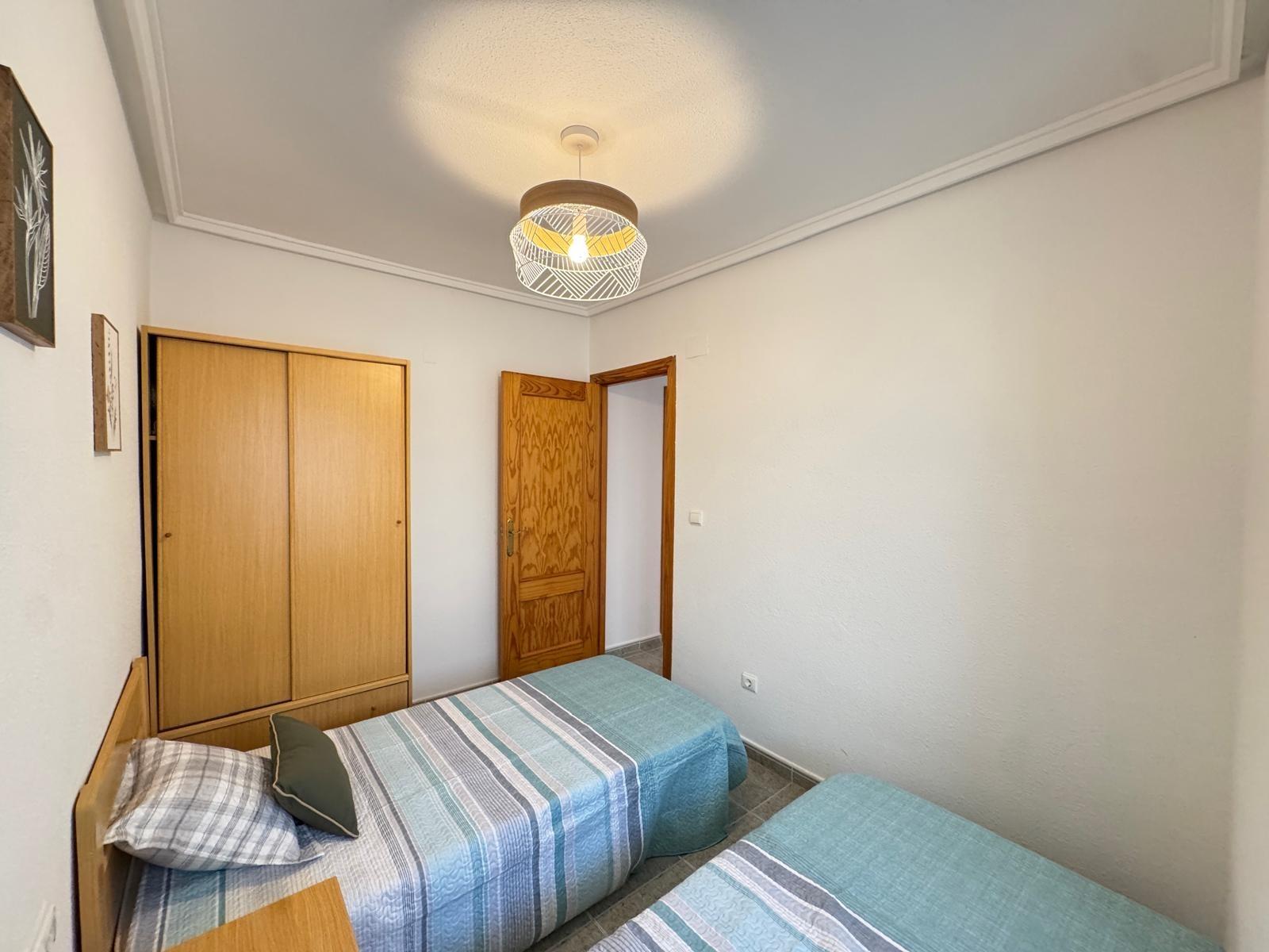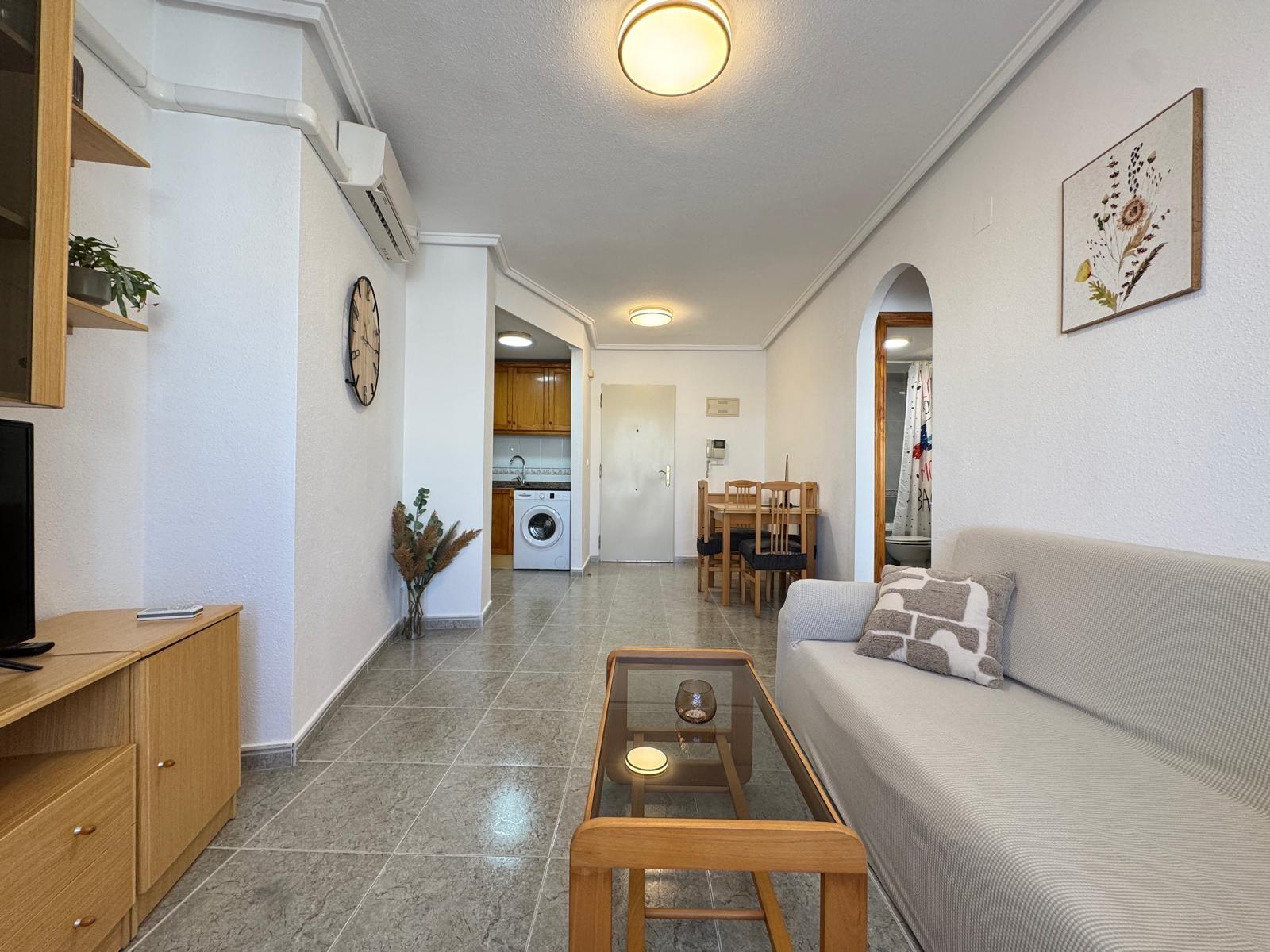 Предлагается к продаже светлая квартира в востребованном районе Торревьехи, всего в 100 метрах от чистого пляжа Лос Локос. Общая площадь составляет 57 м², в планировке предусмотрены 2 спальни и 1 ванная комната. Квартира построена в 2001 году и находится в отличном состоянии.