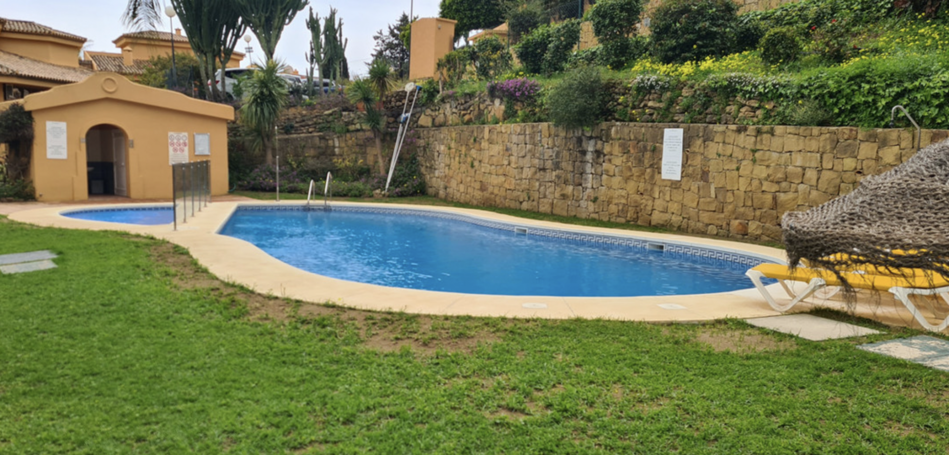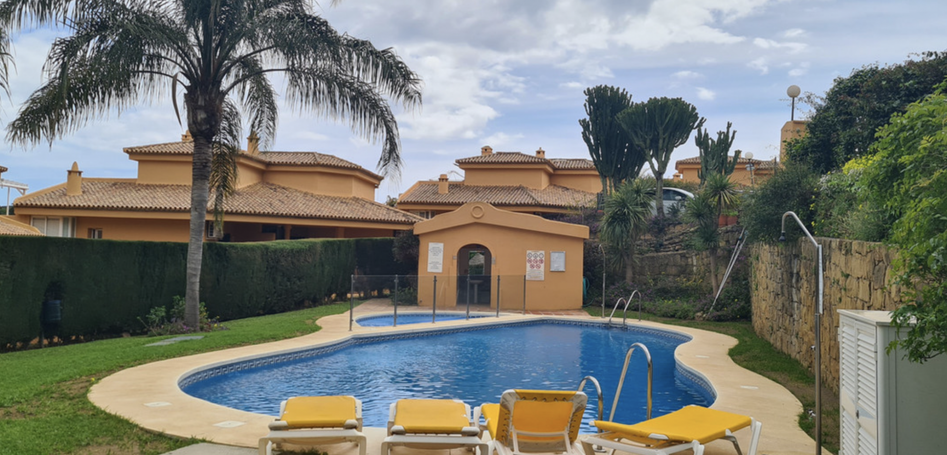 Внутри находятся 3 спальни, из которых две на первом этаже имеют встроенные шкафы. Главная спальня оснащена индивидуальной ванной комнатой, а офис на втором этаже — собственным туалетом и выходом на одну из террас с восхитительными видами на Средиземное море. Просторная кухня-гостиная-столовая обеспечивает много света и идеально подходит для отдыха и встреч с близкими.