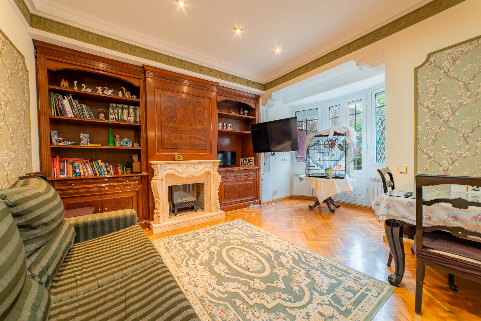 Квартира оснащена системой газового отопления, кондиционерами, натуральным деревянным полом и тройными стеклопакетами, что обеспечивает высокий уровень тепло- и звукоизоляции. Здание оборудовано лифтом и имеет стильный вход. Находится в хорошем состоянии. Престижный район Эшампле предлагает удобный доступ к метро Verdaguer и множеству автобусных маршрутов, что делает это место идеальным для проживания или инвестиций.