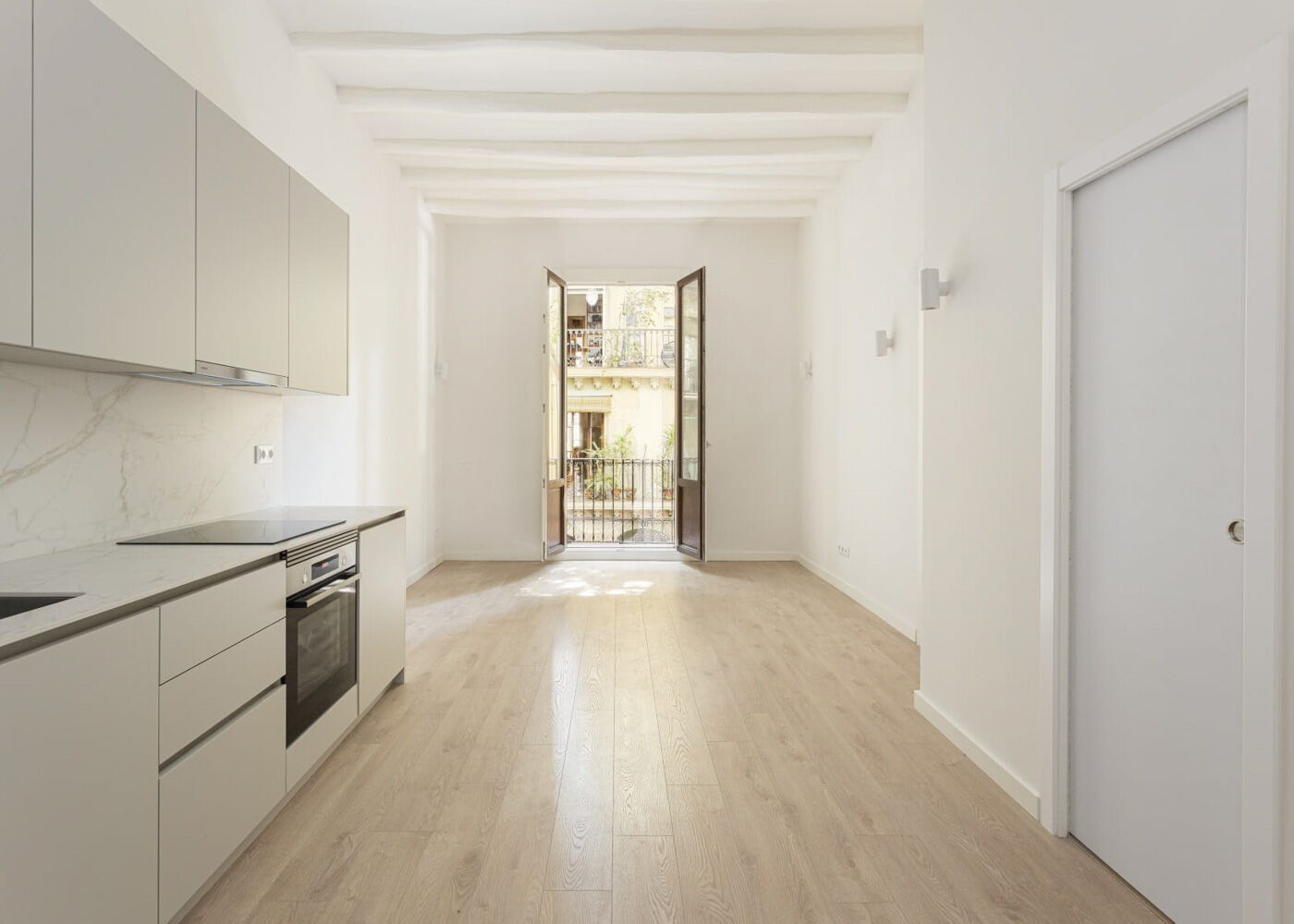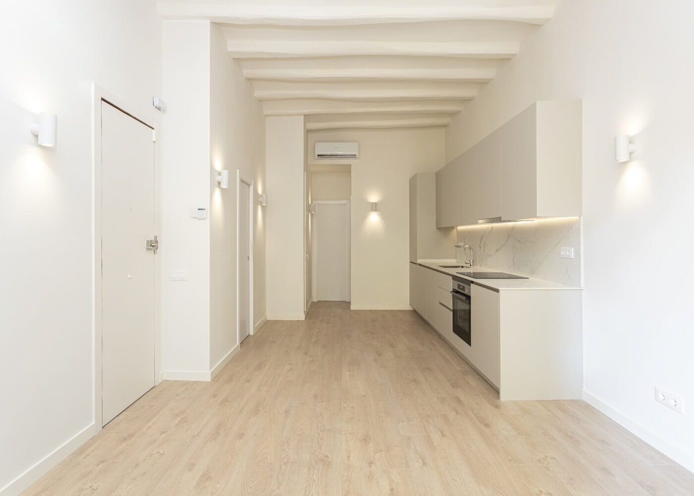 Предлагаем вниманию реновированную квартиру с 2 спальнями и 2 ванными комнатами, расположенную на первом этаже в историческом здании на улице Маргарит в районе Побле Сек. Это пространство сочетает в себе элементы уникальной архитектуры Барселоны и современные дизайнерские решения. Высокие потолки с каталонскими сводами и открытые деревянные балки придают помещению особое светлое настроение.