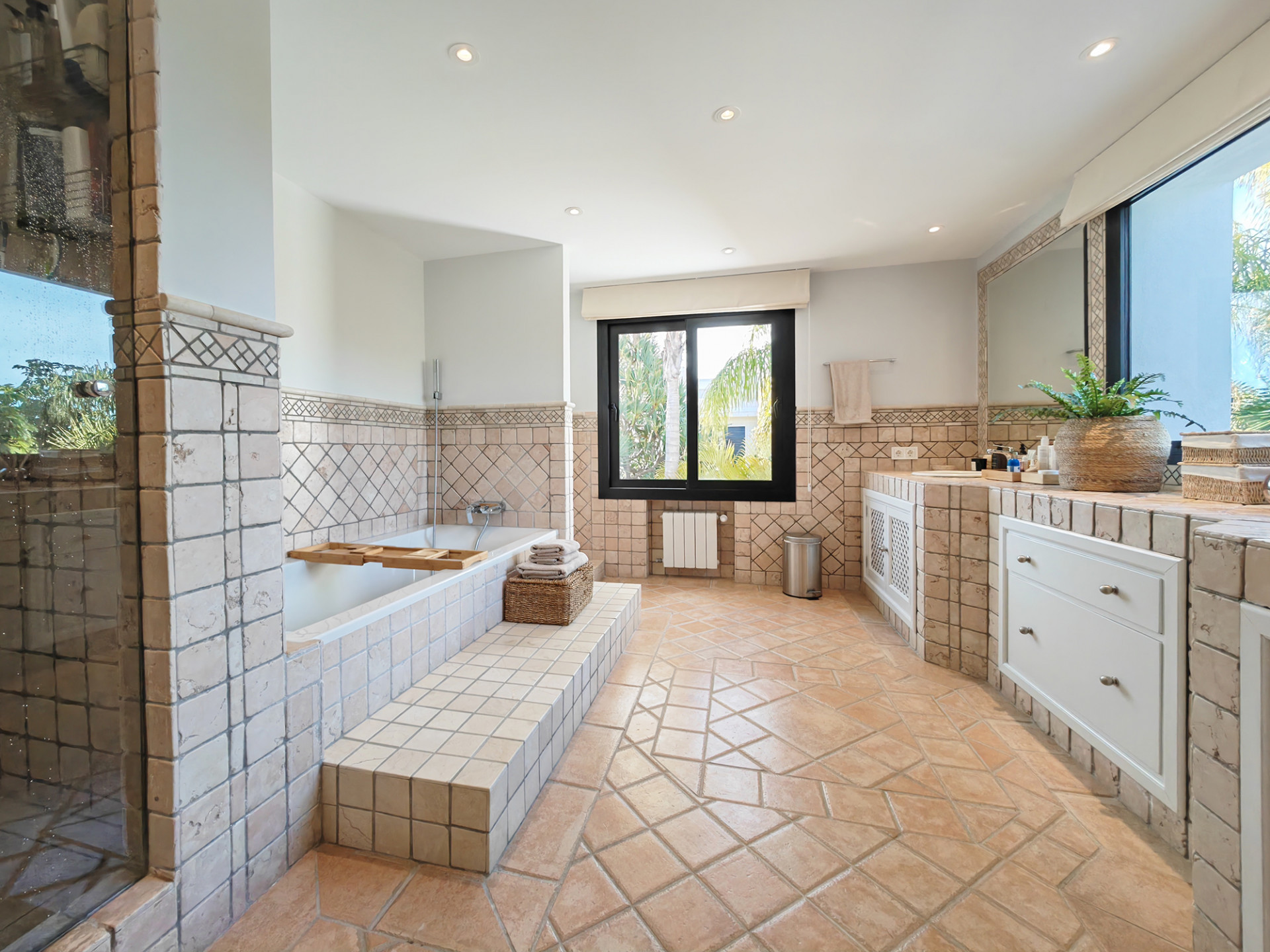 Предлагаем вашему вниманию просторные апартаменты с общей площадью 381 м², расположенные в тихом районе, идеально подходящем для комфортного проживания. Жилое пространство включает 4 спальни и 5 ванных комнат, что обеспечивает удобство и уединение для всех жильцов. На верхнем этаже размещены широкие террасы, где можно наслаждаться великолепными видами и проводить время на свежем воздухе.
