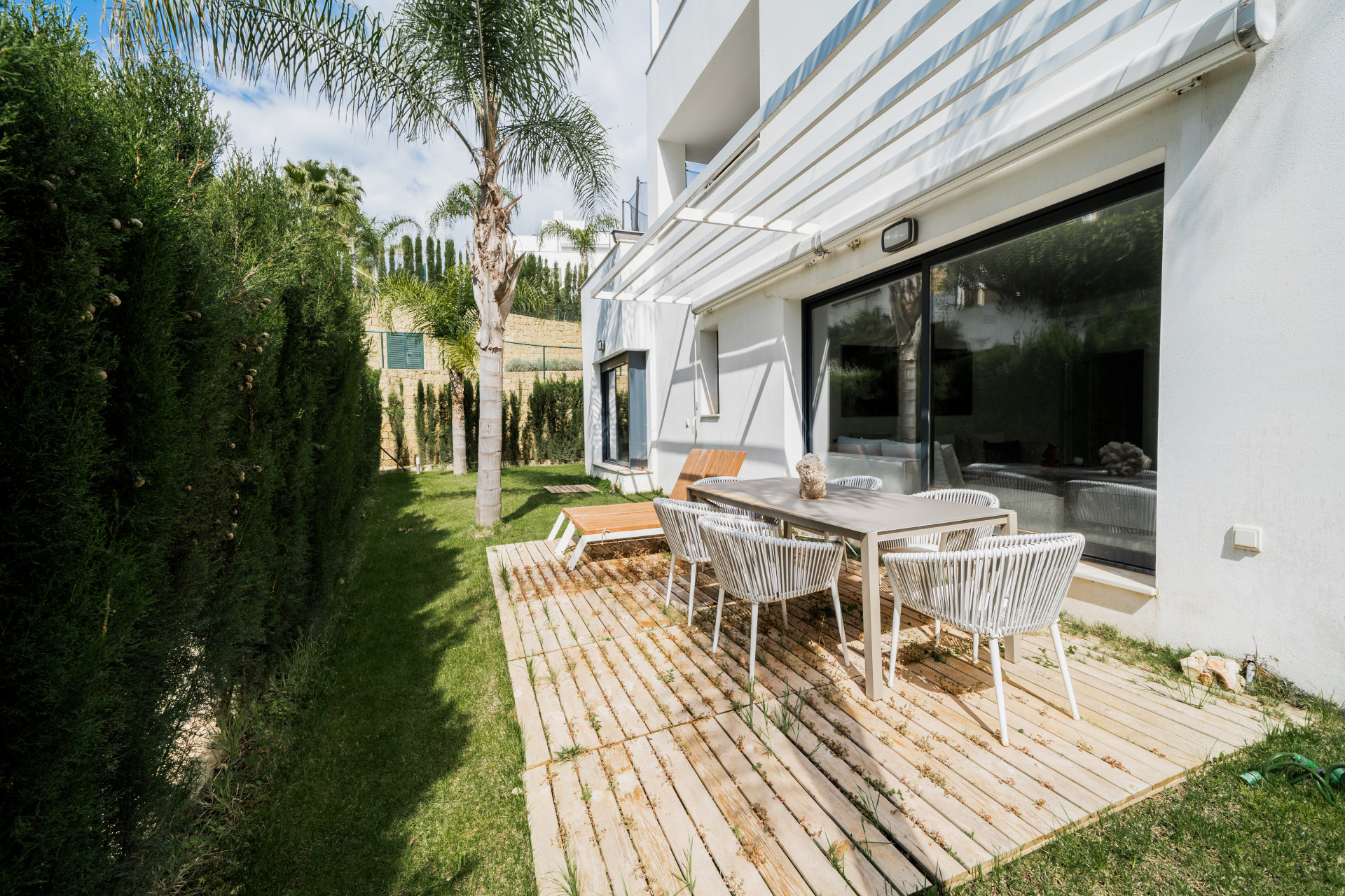 Этот дом также отличается наличием террасы, где можно приятно проводить время на свежем воздухе. Помещения предлагаются с мебелью, включая кухонную, что позволяет сразу же наслаждаться комфортом. Дополнительные удобства включают кондиционер, что делает климат внутри дома комфортным в любой сезон.