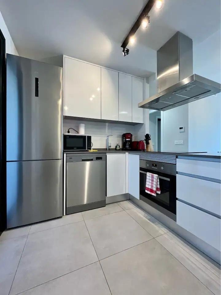 Район с хорошо развитой инфраструктурой: поблизости расположены автобусные остановки и крупные торговые центры, а до побережья можно добраться всего за несколько минут пешком. Ежемесячные эксплуатационные расходы составляют 129 евро.