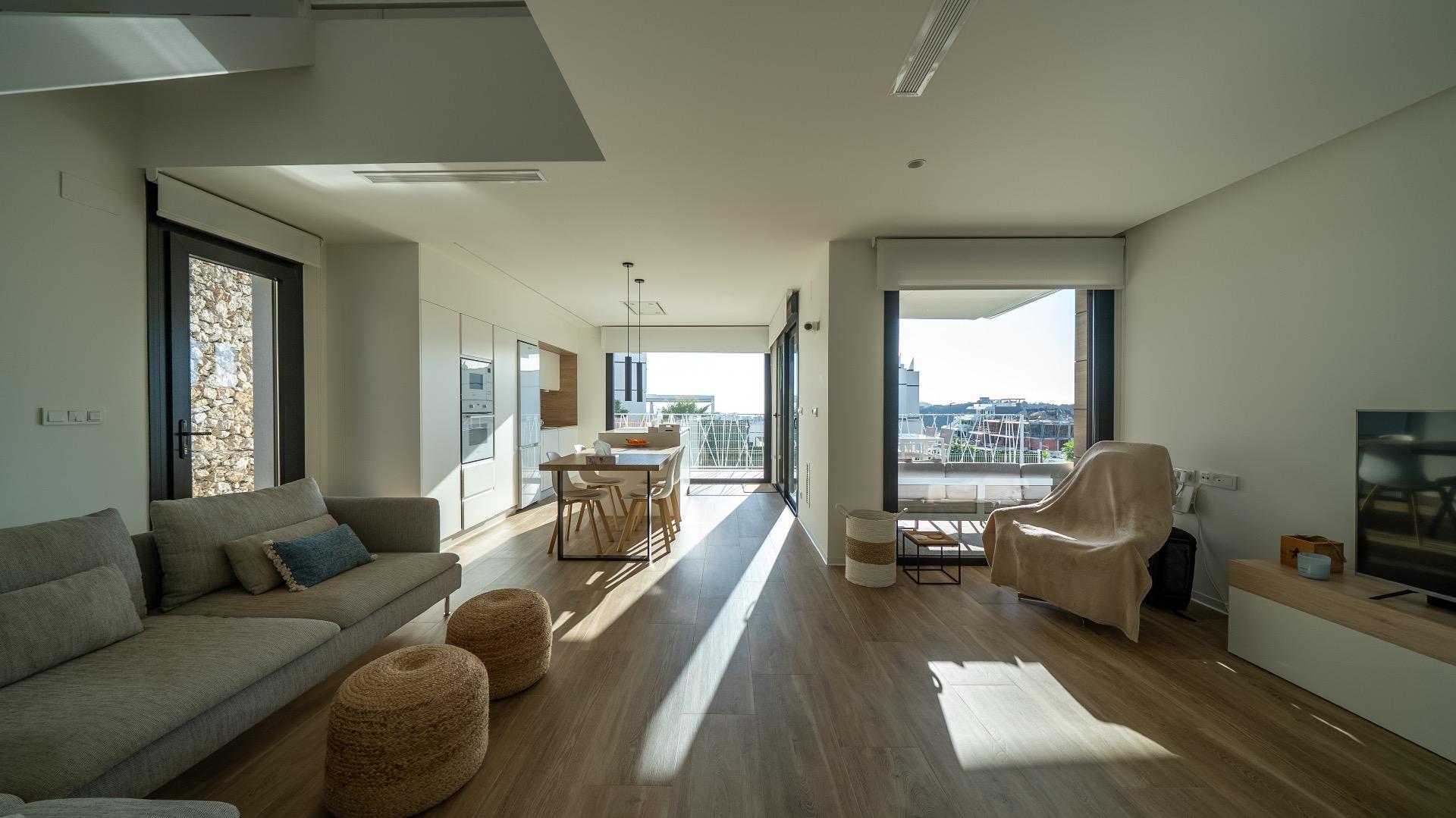 Представленная вилла отличается современным дизайном и расположена в спокойном районе Финестрата, что обеспечивает высокую степень приватности и комфортного проживания. В округе отсутствует текущее строительство, благодаря чему создается стабильная и тихая атмосфера.