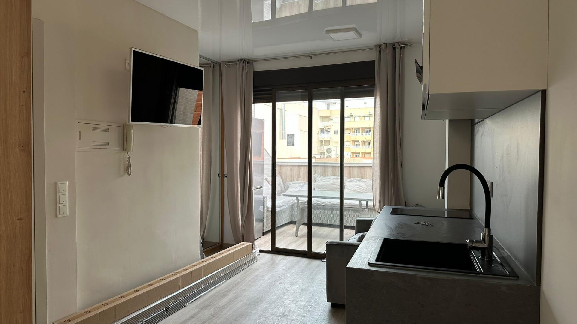 Студия находится в удобном районе Торревьехи, рядом с автобусной станцией, что обеспечивает легкий доступ к общественному транспорту. В окрестностях имеются деревья, торговые центры и школы, что делает это место подходящим как для проживания, так и для инвестиций. В студии предусмотрена полная ванная комната и балкон для отдыха на свежем воздухе.