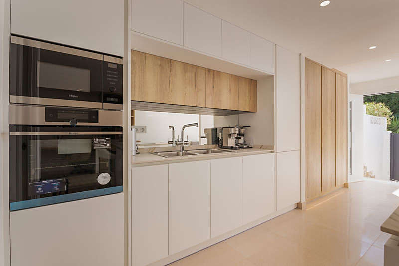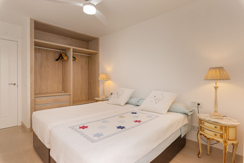 Собственность отличается современным дизайном с открытой кухней, которая плавно переходит в просторную гостиную. Две светлые спальни обеспечивают достаточное пространство для хранения вещей, а уютная веранда подходит для обедов на свежем воздухе. Дополнительно имеется специальная зона обслуживания, что увеличивает функциональность.