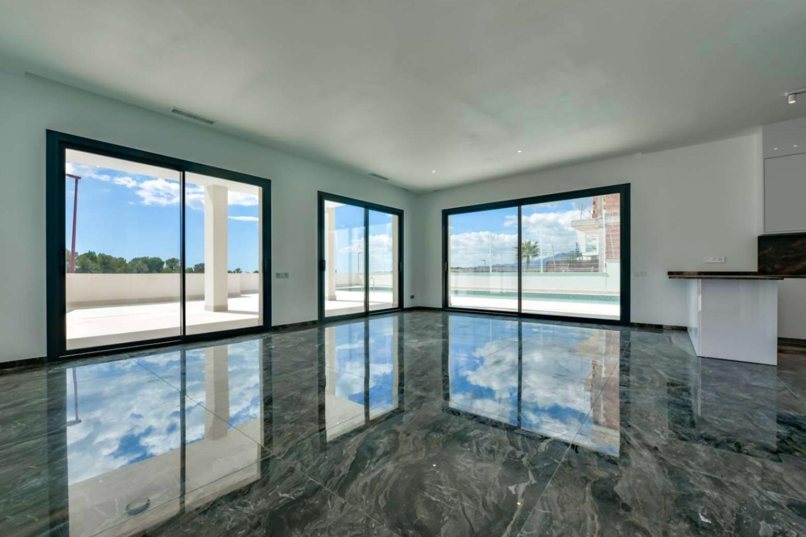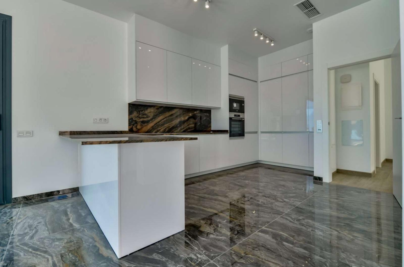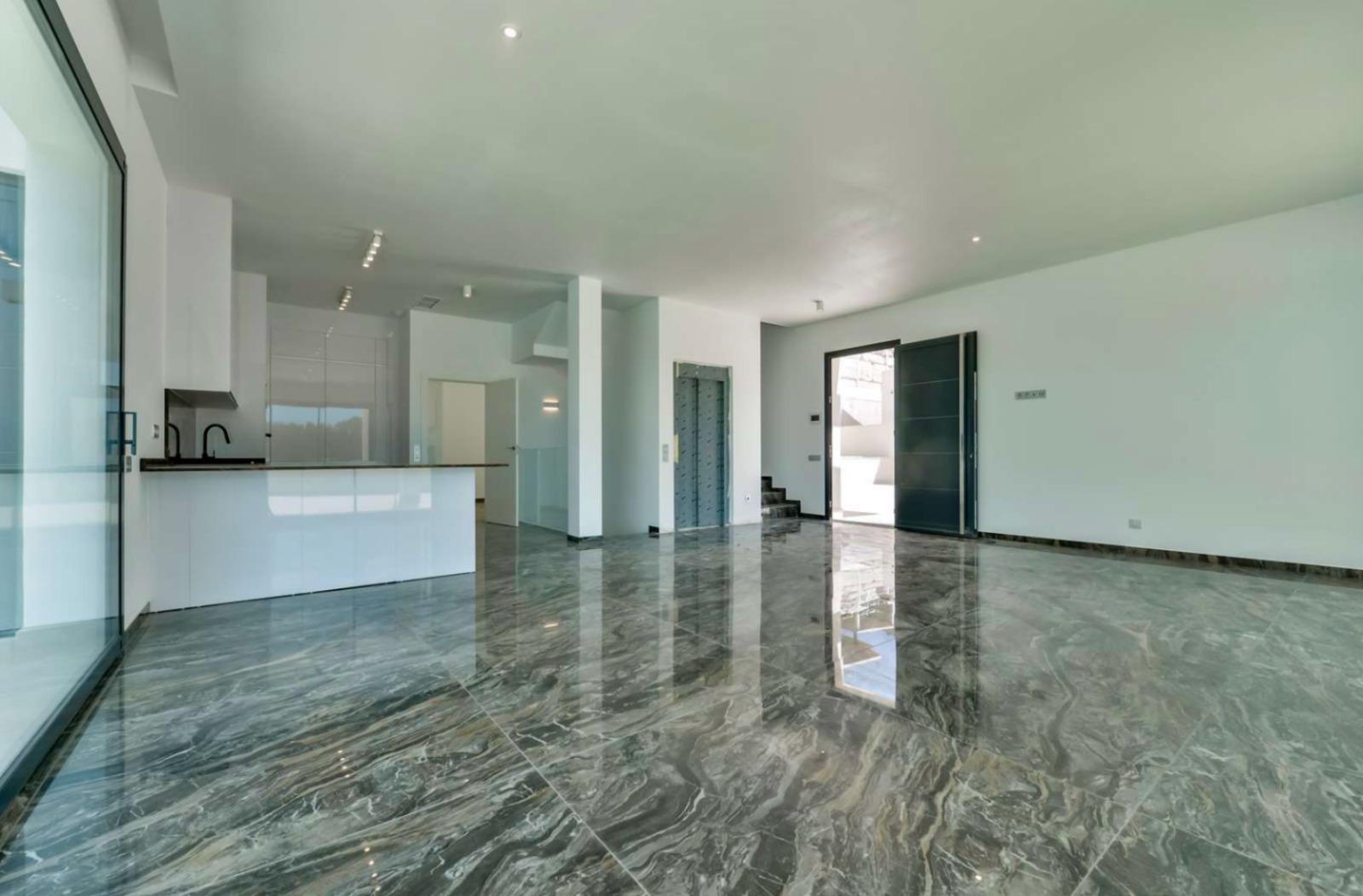 Все материалы для отделки выбраны с учётом высочайших стандартов. Используются керамогранитные полы от Porcelanosa®, а в системе отопления предусмотрены водяные тёплые полы и индивидуальный климат-контроль в каждой комнате. Вилла также характеризуется высокой энергоэффективностью с сертификатом класса A, что обеспечит минимальные расходы на отопление.