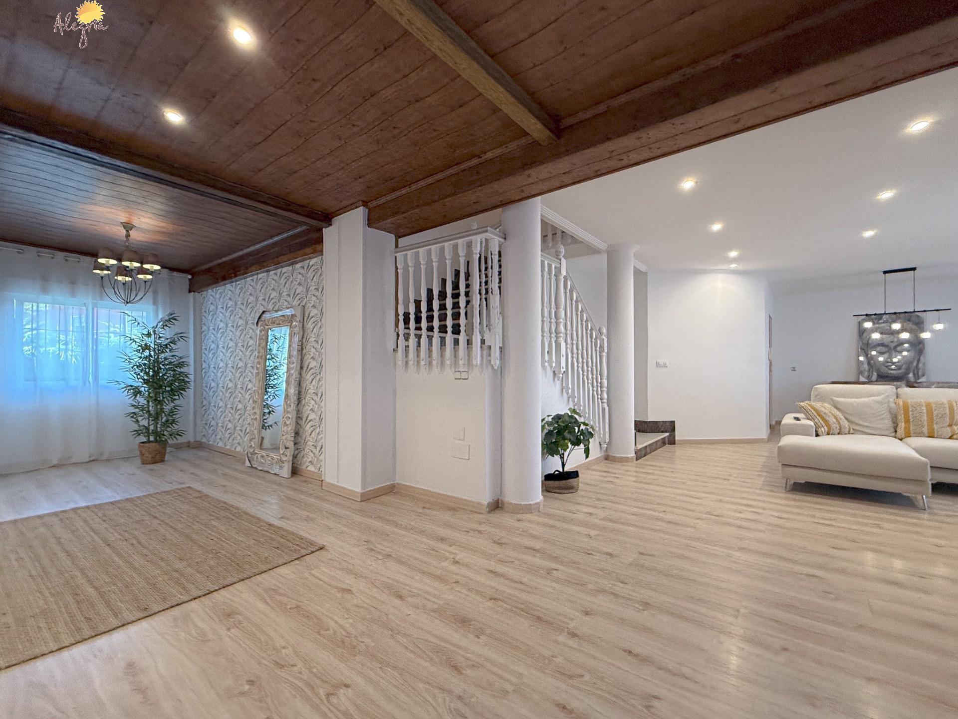 Внутреннее пространство приятно оформлено, имеются встроенные шкафы и камин. Отдельная кухня предоставляет возможность для удобного приготовления пищи. Вам также доступны частный бассейн, солярий и терраса, что словно создаёт оазис для отдыха.